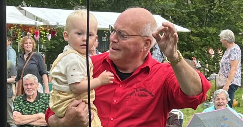 Hiernaast een foto van onze dirigent met een van onze kleine toehoorders